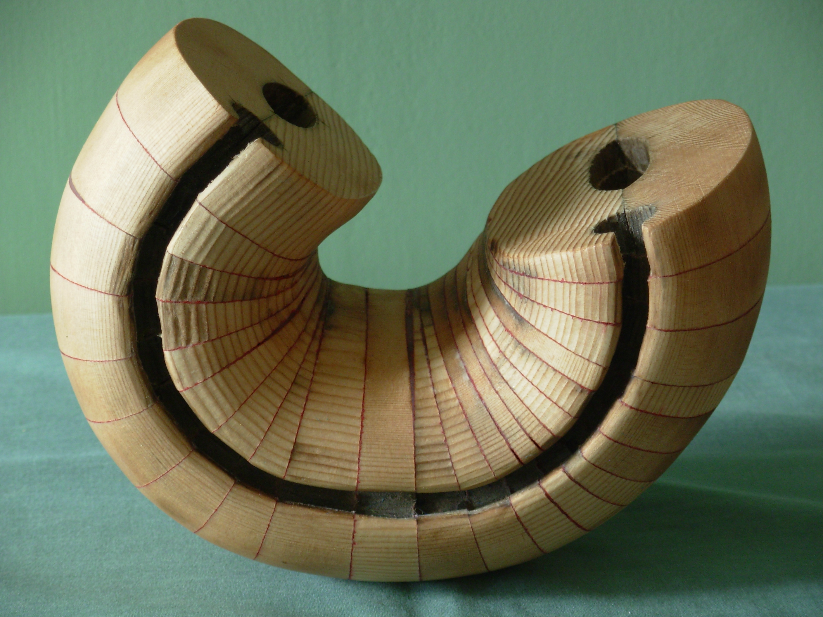 This small sculpture called curl began as an old wooden mast from a long forgotten boat. Initially I wondered how the mast section would look if it was curled up. First big idea.